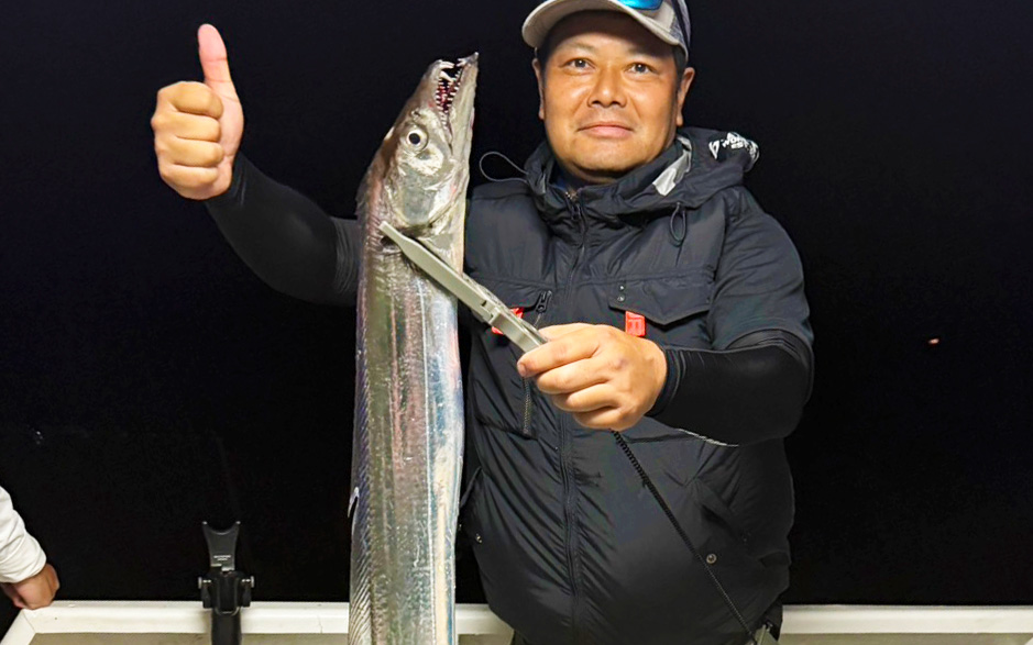 昨日に続き、福岡・博多湾でのタチウオ釣りで出船です。この日は朝のうちから良型が当たり、スタートから期待の持てる展開となりました。昨日と同じく数はそれほどのびませんでしたが、良型サイズがそろっており、全体的に型のいいタチウオが多く見られました。アタリが落ち着いたところで、良型も出ていたことから納得して納竿。内容としては十分満足できる釣行となりました。