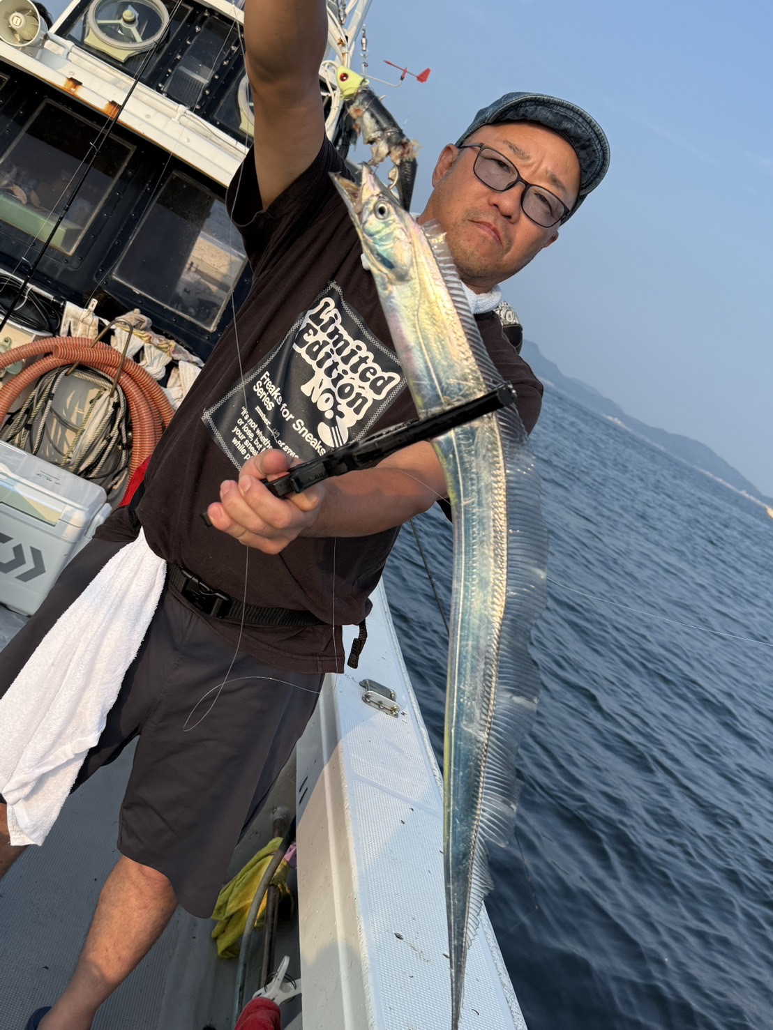 昨日に続き、福岡・博多湾でのタチウオ釣りで出船です。この日は朝のうちから良型が当たり、スタートから期待の持てる展開となりました。昨日と同じく数はそれほどのびませんでしたが、良型サイズがそろっており、全体的に型のいいタチウオが多く見られました。アタリが落ち着いたところで、良型も出ていたことから納得して納竿。内容としては十分満足できる釣行となりました。
