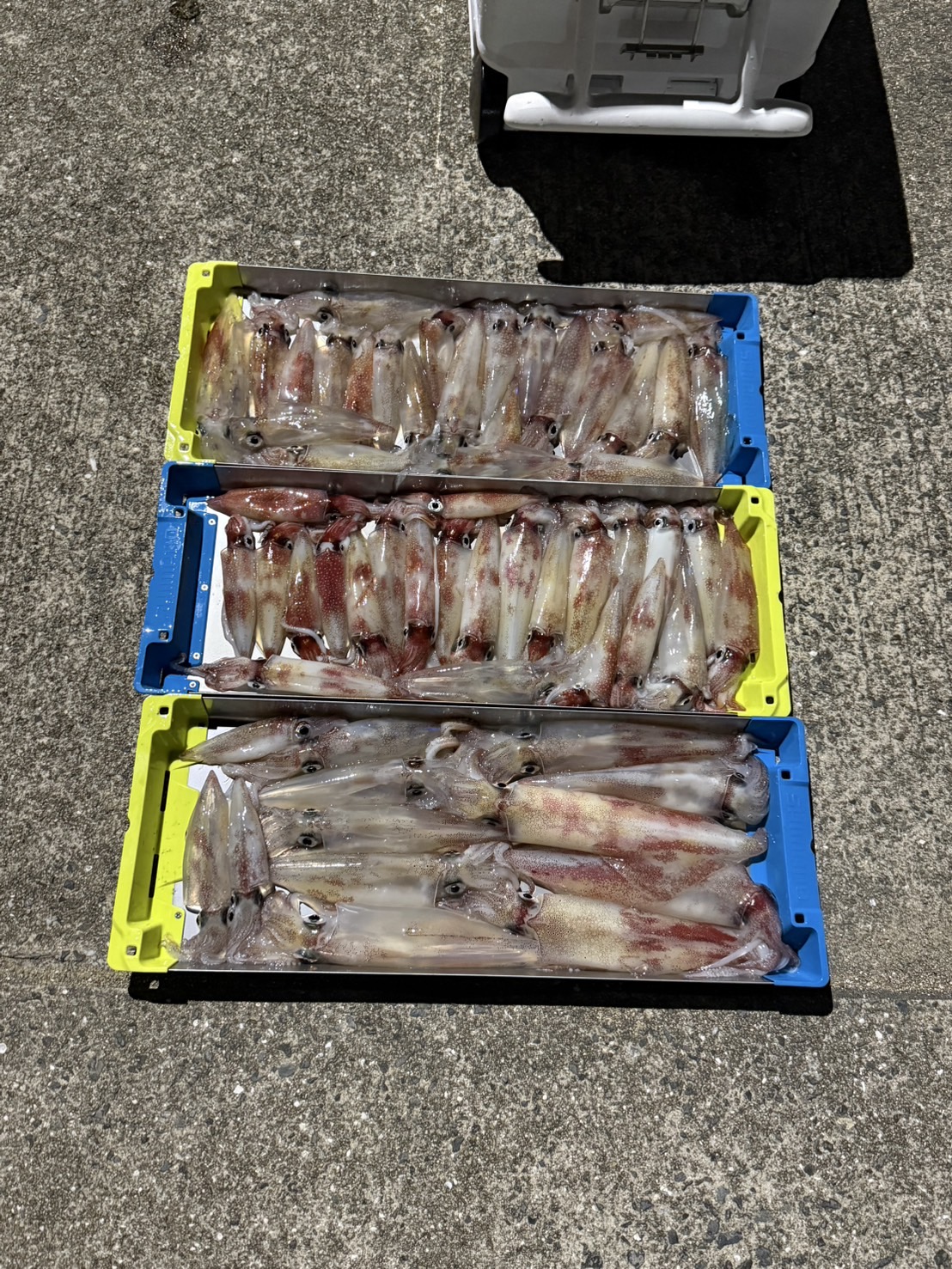玄界灘の夜焚きイカ釣りの釣果です。この日は予報に反して波風が強く、船も揺れやすい状況が続きました。イカの反応もなかなか上がらず、厳しい展開となりましたが、それでも釣る人は60杯以上としっかり数を伸ばしておられました。平均ではおおよそ40〜50杯前後と、波の中でもコンスタントに釣果をあげた方が多かった印象です。仕掛けの選び方や誘い方に工夫を入れつつ、粘り強く狙った方ほど結果につながったようでした。今後も天候や潮の動きに注目しながら、安定した釣果が期待できるシーズンが続きそうです。福岡・糸島エリアで夜焚きイカ釣りをお考えの方は、唐泊漁港の遊漁船 鵃(みさご)までお気軽にお問い合わせください。